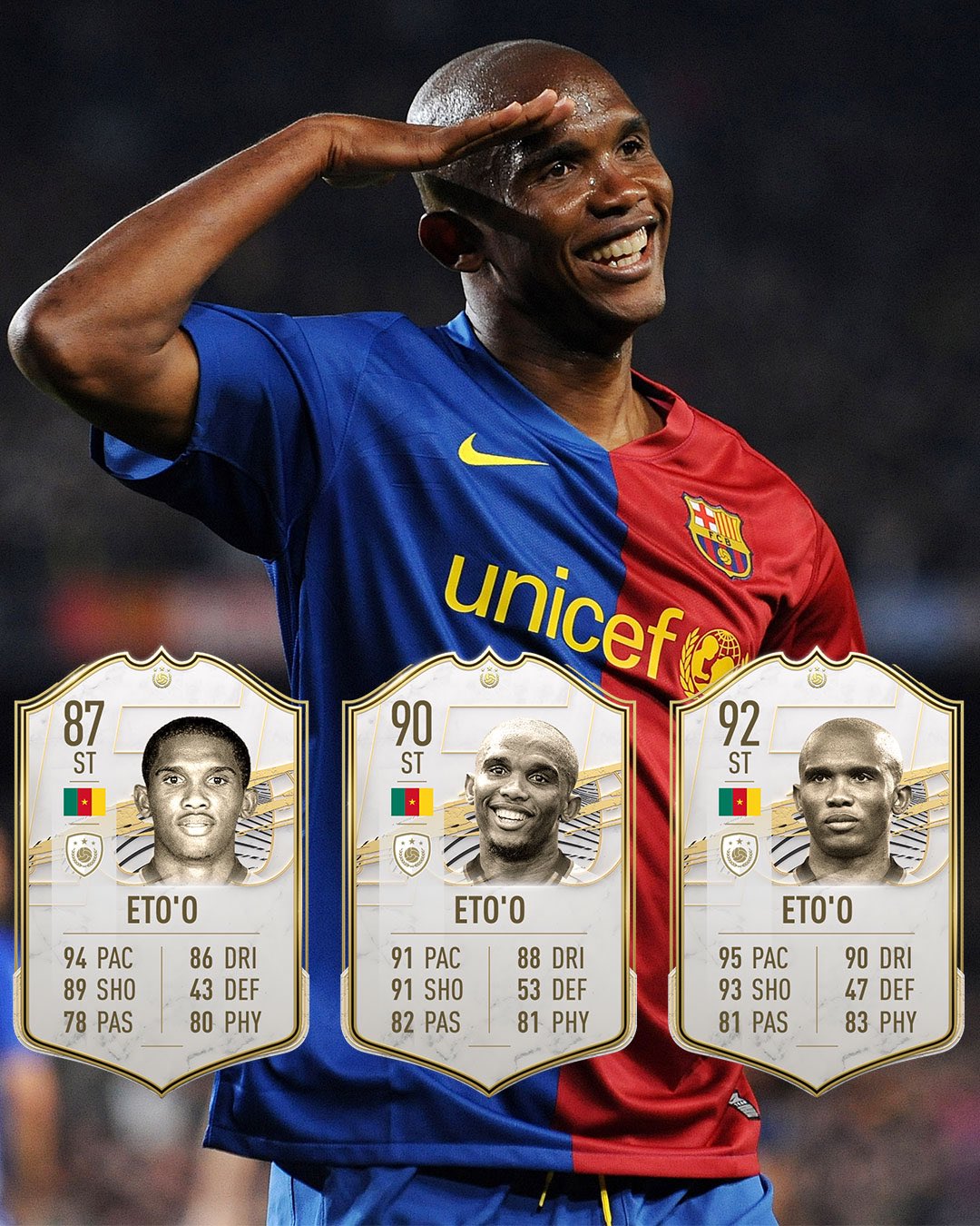 Fifa 21 News On Twitter Samuel Eto O Icon Ratings In Fifa21 Baby 87 Mid 90 Prime 92